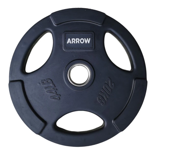The ARROW Commercial Rubber Coated Olympic Weight Plates , the perfect choice for weightlifting and barbell workouts in both home and commercial gyms. These weight plates are designed to withstand heavy use and provide durability and longevity. With their tri-grip handles, they offer versatility for various exercises, making them a practical and efficient choice for your strength training routine.