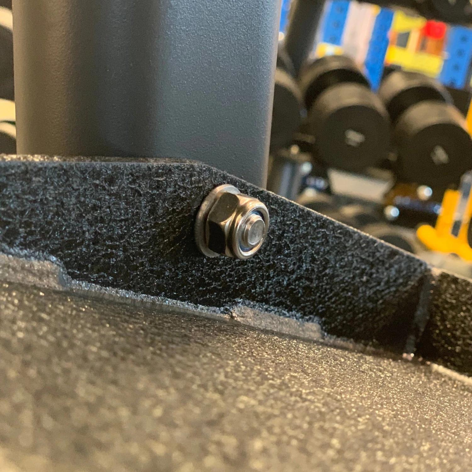 Our commercial gyms choose this for its unique powder coating which resists marks and wear. The spacing between shelves eliminates the scraping of knuckles and reduces risk in a commercial environment.