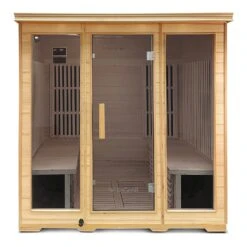Crafted from durable Hemlock wood, this compact sauna seamlessly fits into any space, making it perfect for small homes or apartments.