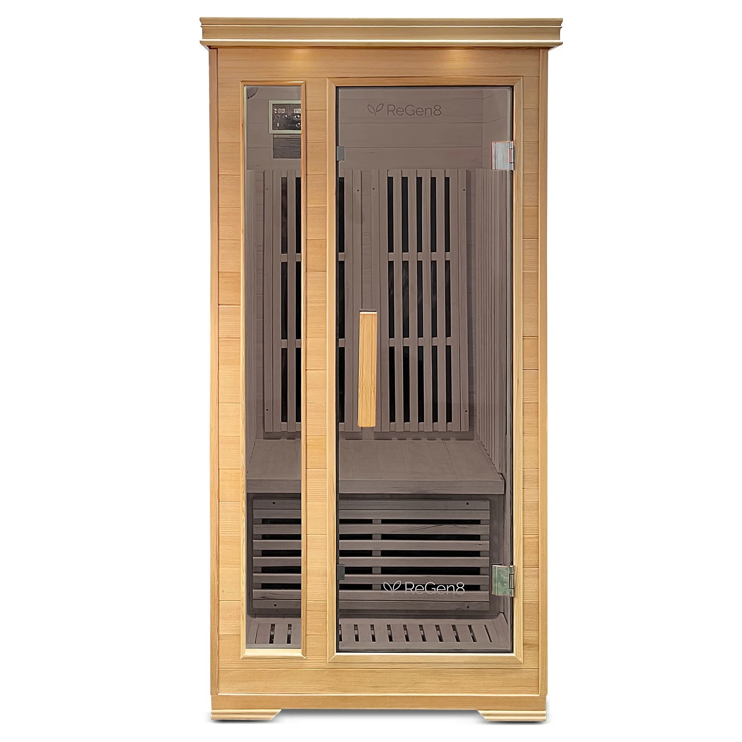 Experience ultimate relaxation with the ReGen8 Solo V2 Infrared Sauna, designed for one person and featuring modern infrared heating technology.